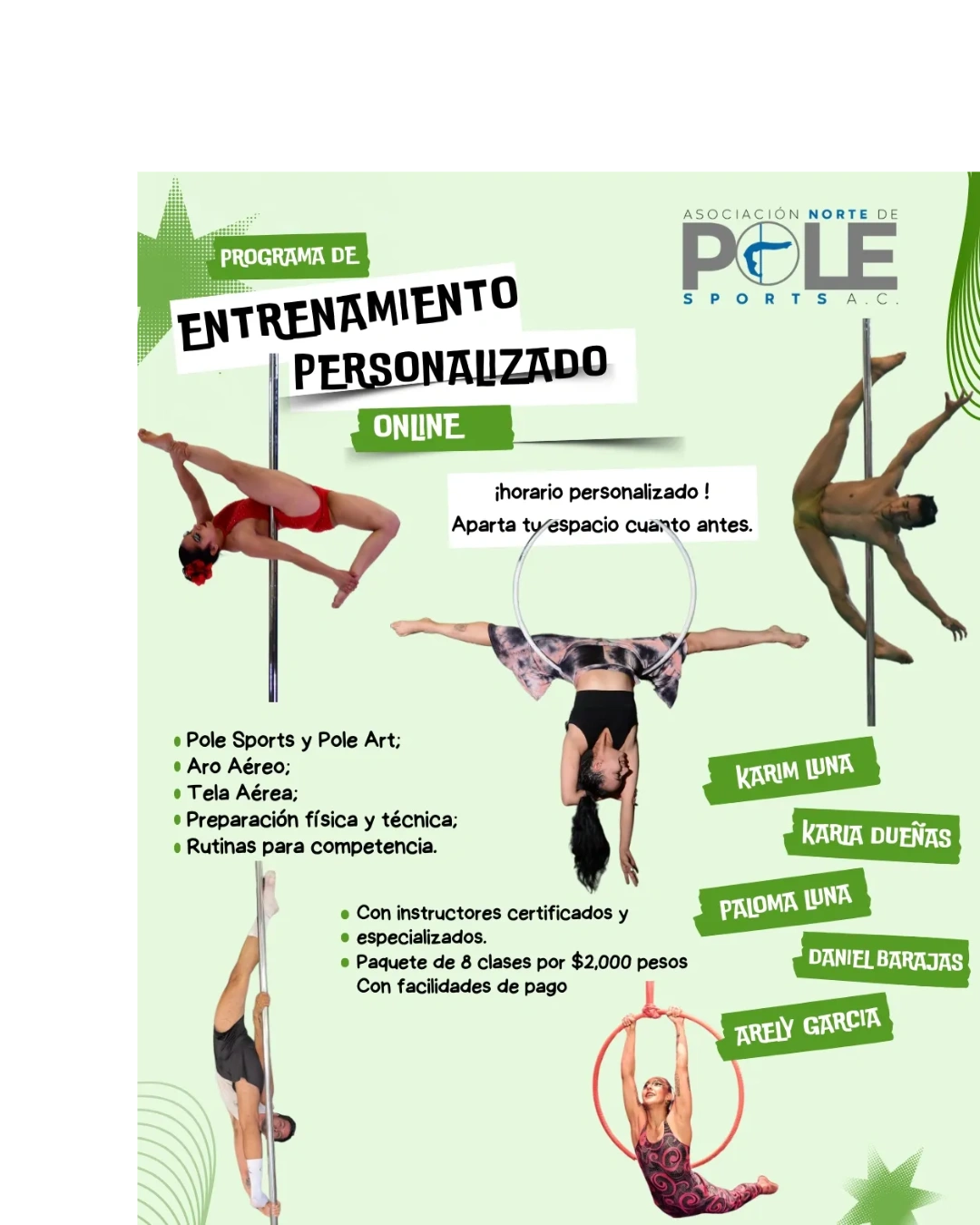 Gracias por tu interés en los entrenamientos online personalizados de la Asociación Norte de Pole Sports A.C.